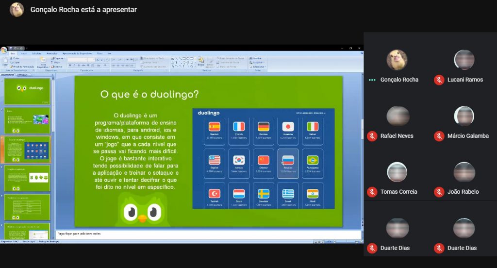 Na semana da turma que decorreu entre 15 e 19 de março, os alunos realizaram apresentações, virtualmente, sobre alguns aplicativos que possam ser utilizados no seu quotidiano escolar.