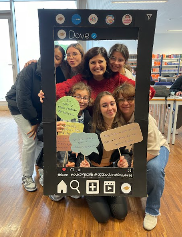 As turmas 10ºUa, Uc e Us, que frequentaram o Programa “DOVE – Eu Confiante!” – “Desenvolvimento da Autoestima Corporal em Contexto Escolar” desenvolvido pelas Psicólogas do SPO, Drª Esperança Santos e Drª Catarina Almeida ‘vestiram a camisola’ de “Promotores da autoconfiança corporal” e ao som da Rádio escola, levaram a temática à comunidade escolar, durante o intervalo grande da manhã, através de várias atividades. Nomeadamente: Distribuição de Marcadores de livros produzidos pelos próprios com frases que valorizam e celebram as qualidades pessoais distintas e exclusivas; Confeção e oferta de Pipocas & Algodão Doce à comunidade escolar enquanto conversavam sobre a importância de ‘alimentar’ a autoestima; Produção de Selfies “reais” à comunidade tendo como fundo uma moldura e balões com frases sobre a autoestima para celebrar a individualidade.