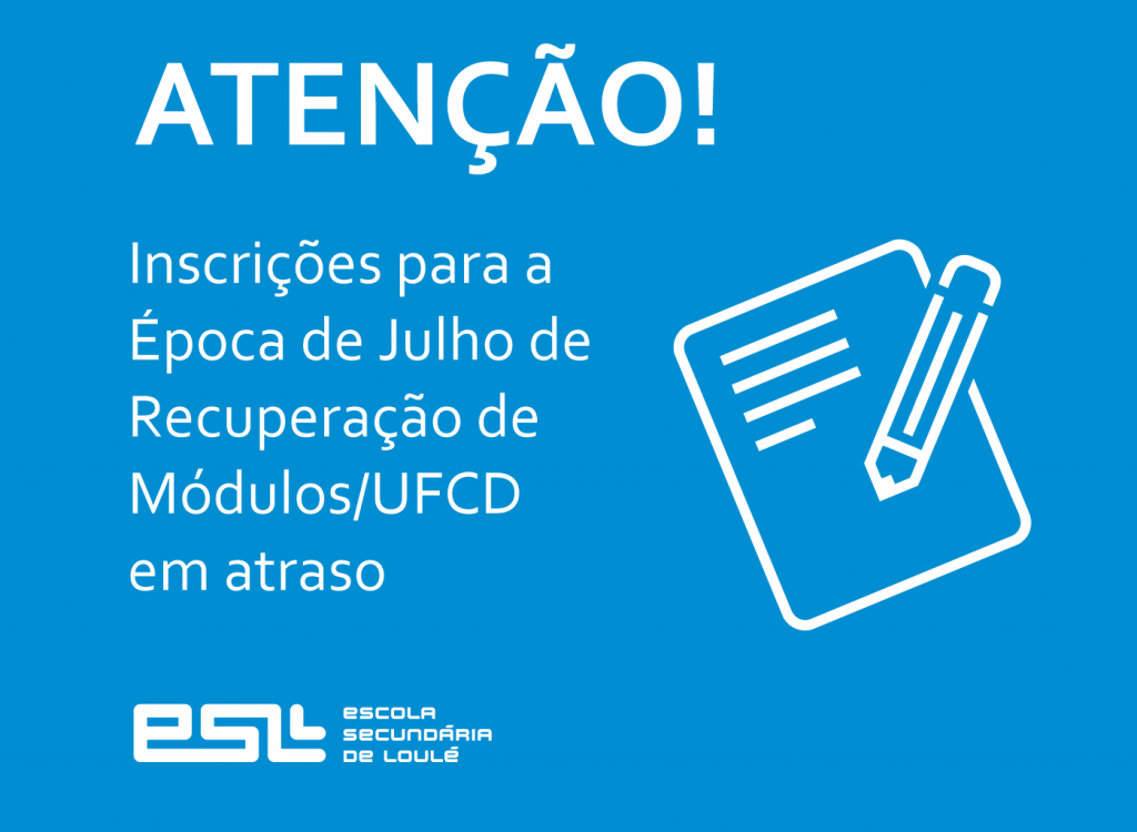 Irão em breve ser abertas as Inscrições para a época de julho para recuperação de módulos/UFCD em atraso dos Cursos Profissionais.