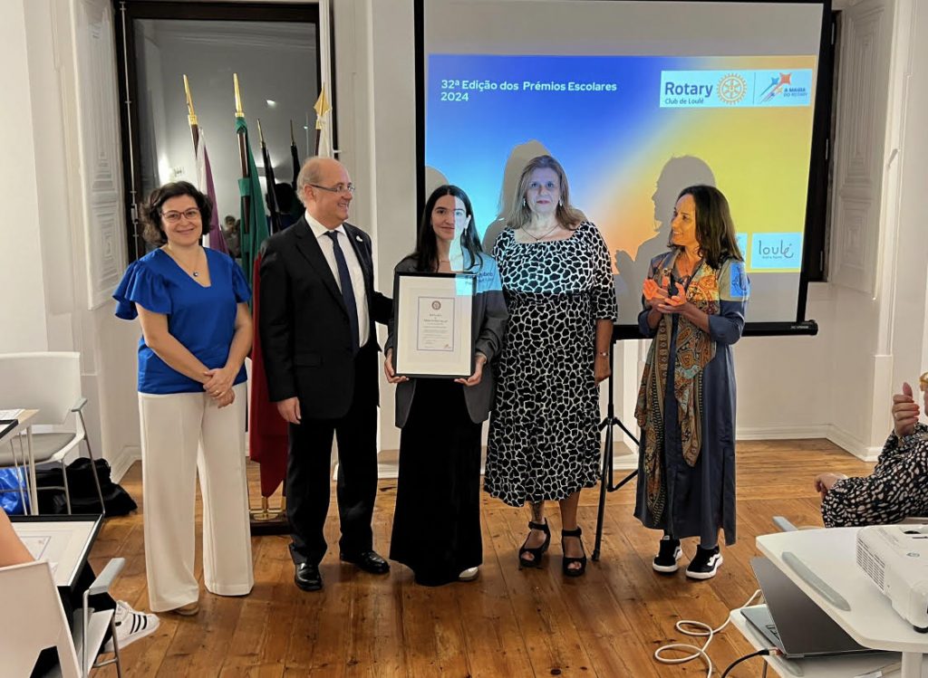 O Presidente do Rotary Clube de Loulé, Professor Mauro Figueiredo, procedeu à entrega dos prémios de Reconhecimento de Mérito Escolar aos Alunos dos 9º e 12º anos das Escolas Públicas do Concelho de Loulé. Foi laureada a melhor aluna da Escola Secundária de Loulé, no ano 2023/2024, Inês Dionísio Portela Costa, a quem endereçamos os nossos parabéns.