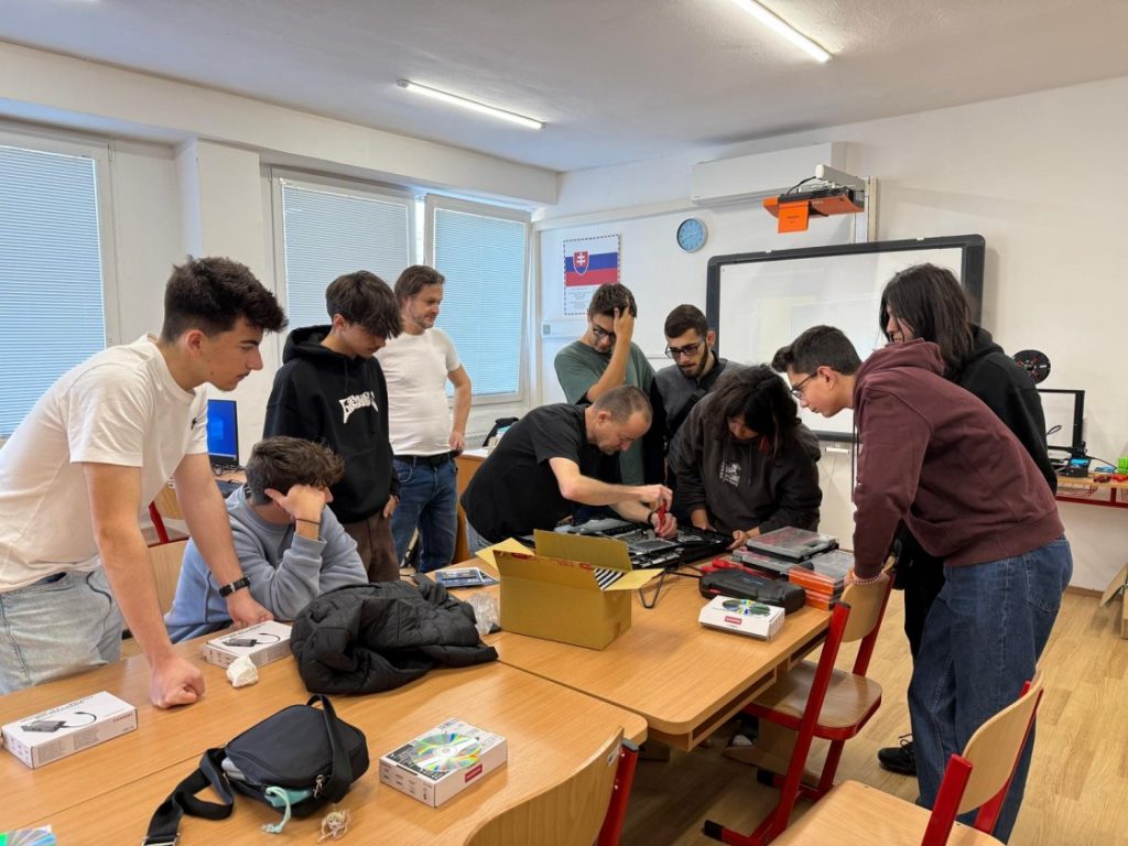 Mas a experiência vai muito além do estágio! Os nossos alunos têm sido verdadeiros embaixadores da nossa escola, da cidade de Loulé, da região do Algarve e de Portugal. Em várias escolas eslovacas, apresentaram orgulhosamente a sua identidade e cultura, encantando os colegas locais. Promoveram também workshops interativos com o robot LEGO Spike, realizaram intervenções técnicas como a substituição de discos rígidos em computadores, e visitaram outras instituições educativas, onde trocaram experiências e conheceram diferentes realidades escolares. Integraram ainda visitas a empresas de jogos para telemóvel, jogos de basquetebol, visitas a um canil, ensaios de música, torneios de MMA, entre outras experiências que, para além do conhecimento, alimentam o espírito e o coração.