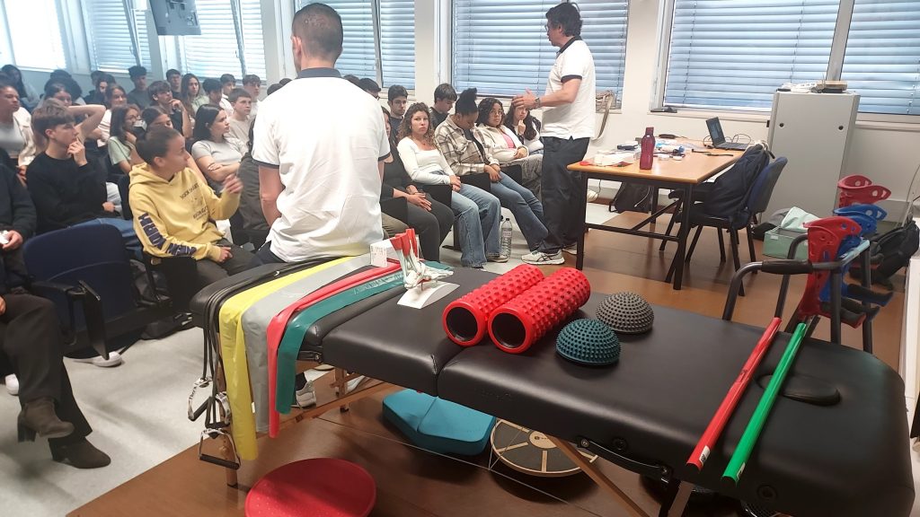 Durante esta componente, os palestrantes apresentaram materiais utilizados em contexto clínico, demonstraram técnicas específicas e estratégias de intervenção com doentes, permitindo aos alunos uma perceção mais concreta e realista do trabalho diário de um Fisioterapeuta. Esta abordagem prática foi essencial para estimular o interesse e facilitar a reflexão vocacional dos jovens presentes.