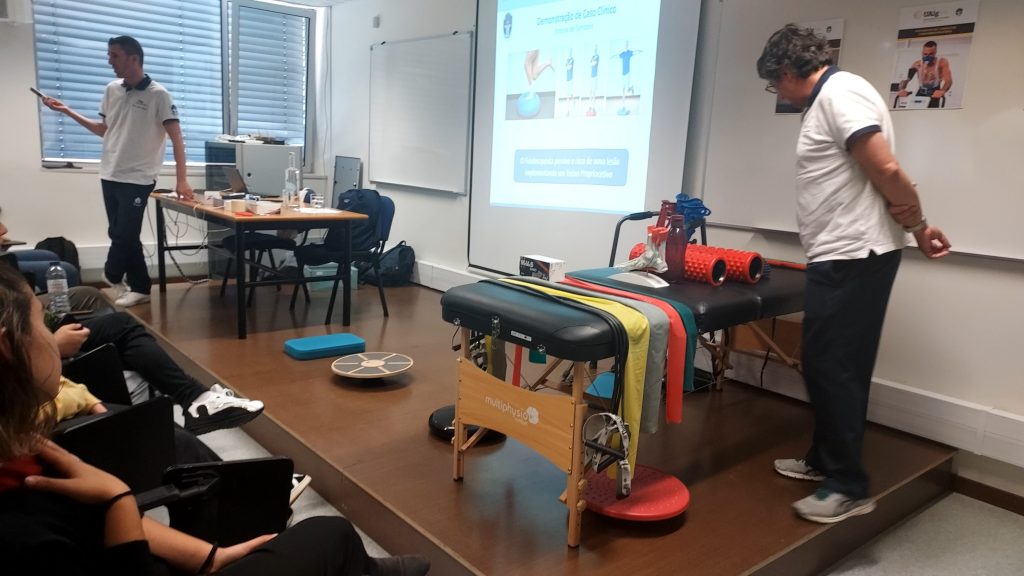 A sessão foi dinamizada pelos fisioterapeutas João Felício e Rui Cintra, que proporcionaram aos participantes uma viagem esclarecedora pelo universo da Fisioterapia, profissão cada vez mais valorizada e com um papel determinante na área da saúde e reabilitação.