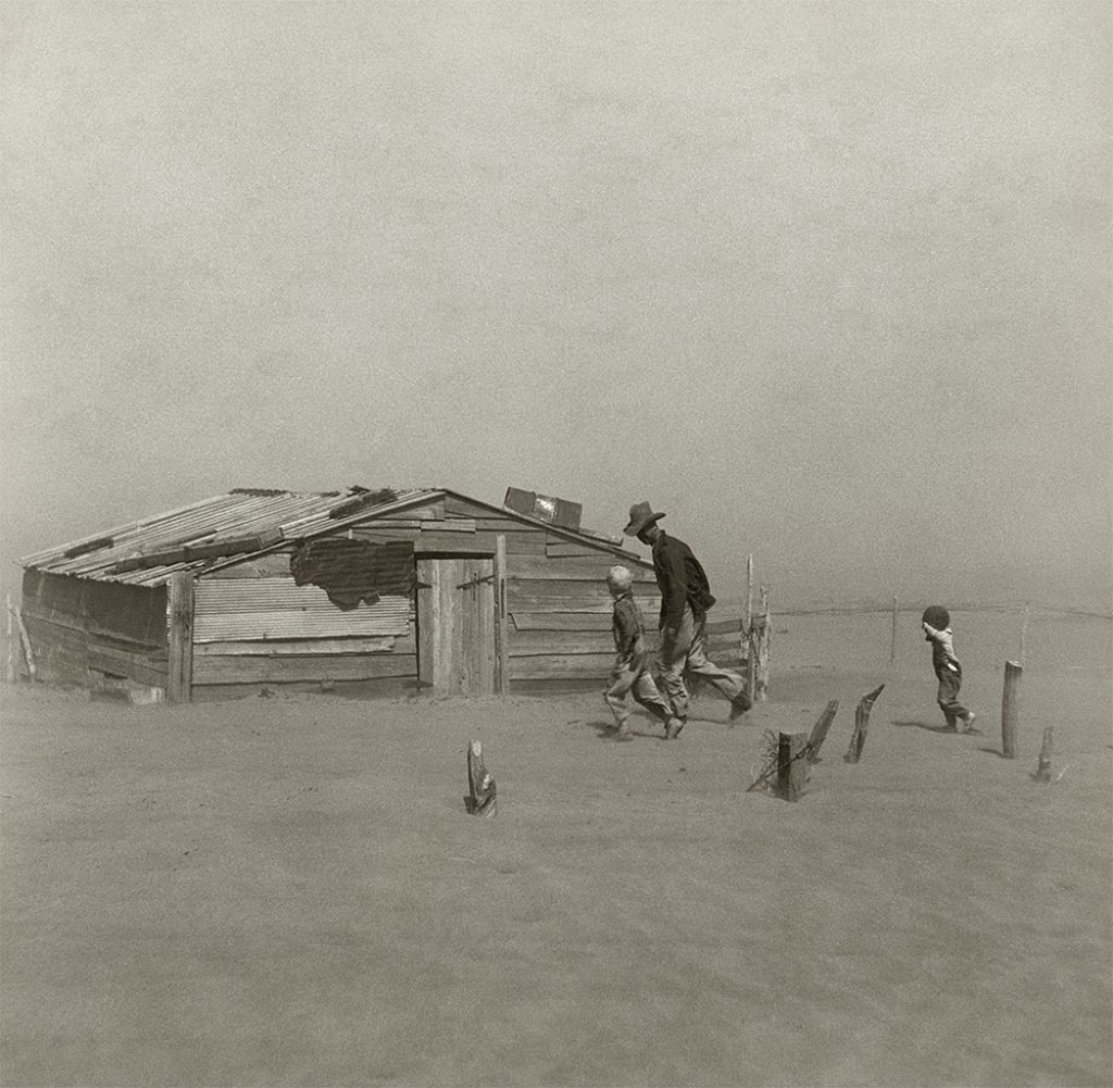 Agricultor com os filhos, durante tempestade de areia, Oklahoma, E.U.A., 1936