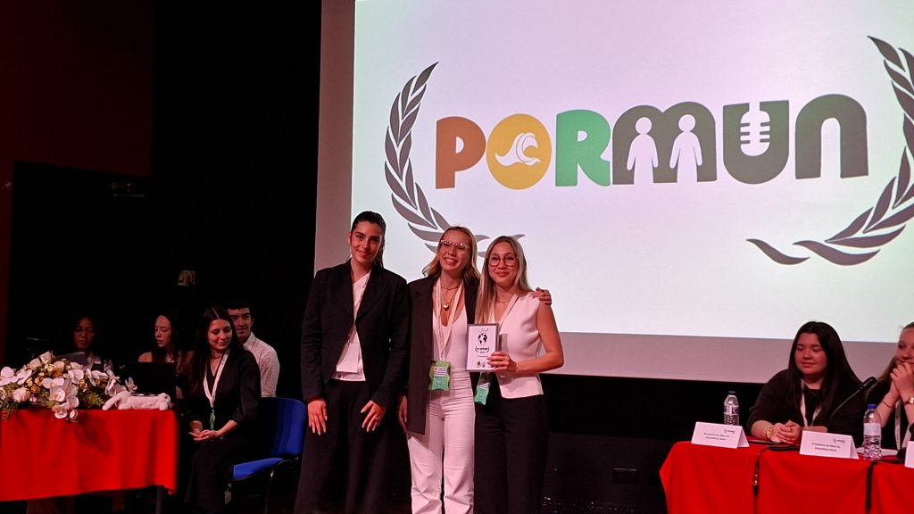 1.º Prémio da Conferência PORMUN 2026, realizada na Escola Secundária João de Deus, em Faro.